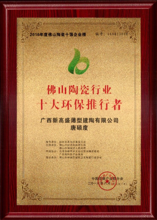 8月13日下午,由國(guó)家低碳產(chǎn)業(yè)聯(lián)合會(huì)主辦,佛山市經(jīng)濟(jì)和信息化局支持,佛山市禪城區(qū)陶瓷協(xié)會(huì)聯(lián)合承辦的佛山陶瓷行業(yè)“綠色發(fā)展”論壇暨佛山陶瓷十強(qiáng)企業(yè)授牌儀式在佛山市政府迎賓館舉辦。作為新型綠色建筑材料的創(chuàng)新者與引領(lǐng)者,LA’BOBO領(lǐng)薄陶瓷薄板所屬母公司廣西新高盛薄型建陶有限公司喜獲“佛山陶瓷(創(chuàng)新型)十強(qiáng)企業(yè)”、“中國(guó)綠色瓷磚推薦品牌”獎(jiǎng)項(xiàng),中國(guó)陶瓷薄板先行者——LA’BOBO領(lǐng)薄陶瓷薄板董事長(zhǎng)唐碩度喜獲“佛山陶瓷行業(yè)十大環(huán)保推行者”獎(jiǎng)項(xiàng)。