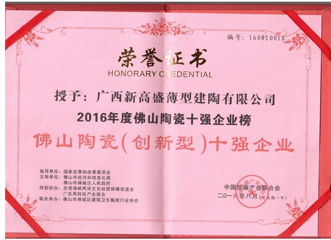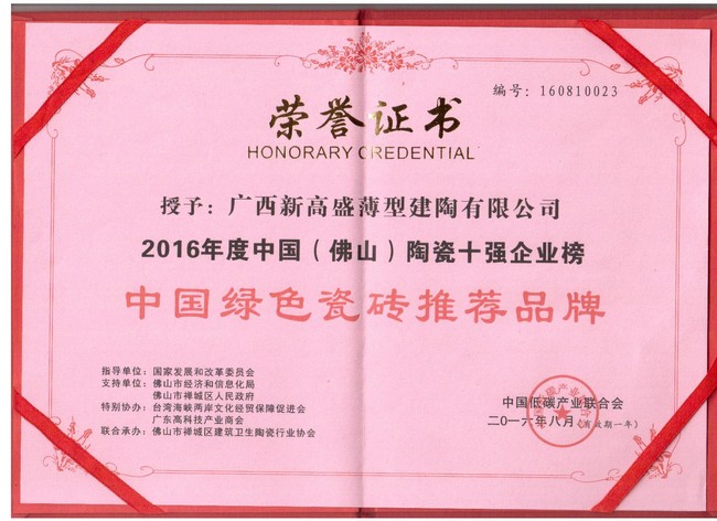 佛山陶瓷十強(qiáng)企業(yè)榜是由國(guó)家低碳產(chǎn)業(yè)聯(lián)合會(huì)主辦,佛山市經(jīng)濟(jì)和信息化局支持,佛山市禪城區(qū)陶瓷協(xié)會(huì)聯(lián)合、美家網(wǎng)、搜陶網(wǎng)等聯(lián)合承辦。獲獎(jiǎng)的獎(jiǎng)項(xiàng)具有唯一性、權(quán)威性、排他性,符合本土化、國(guó)際化、時(shí)代化以及力舉科技創(chuàng)新、經(jīng)營(yíng)卓越、愛(ài)與奉獻(xiàn)三個(gè)方面。本次佛山陶瓷行業(yè)“綠色發(fā)展”論壇,同時(shí)也是響應(yīng)了佛山市政府號(hào)召,完成《2016年佛山市兩會(huì)政府工作報(bào)告》加快低碳能源管網(wǎng)規(guī)劃建設(shè),擴(kuò)大低碳能源使用范圍;《佛山市2016年大氣污染防治行動(dòng)方案的通知》相關(guān)要求,積極迎合佛山市政府計(jì)劃中積極推進(jìn)綠色低碳的目標(biāo)要求,同時(shí)加快推進(jìn)產(chǎn)業(yè)轉(zhuǎn)型升級(jí),提升佛山品牌知名度,服務(wù)企業(yè)生產(chǎn),給人們社會(huì)提供健康環(huán)保綠色的選擇。