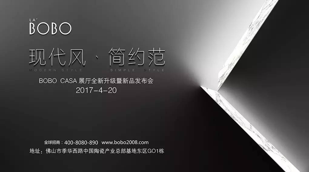 2017年4月20日,“現(xiàn)代風(fēng) 簡(jiǎn)約范——2017 BOBO CASA展廳全新升級(jí)暨新品發(fā)布會(huì)”在LA’BOBO陶瓷薄板總部展廳隆重舉行,LA’BOBO陶瓷薄板董事長(zhǎng)唐碩度、副總裁忻勤、中國(guó)事業(yè)部總經(jīng)理肖濤、國(guó)際事業(yè)部總經(jīng)理馬藹文、品牌中心總經(jīng)理熊健以及來(lái)自全球各地的經(jīng)銷(xiāo)商、合作伙伴以及媒體記者等近百人出席了發(fā)布會(huì)。發(fā)布會(huì)上,BOBO CASA展廳、LA’BOBO抗菌視頻大片全新亮相。