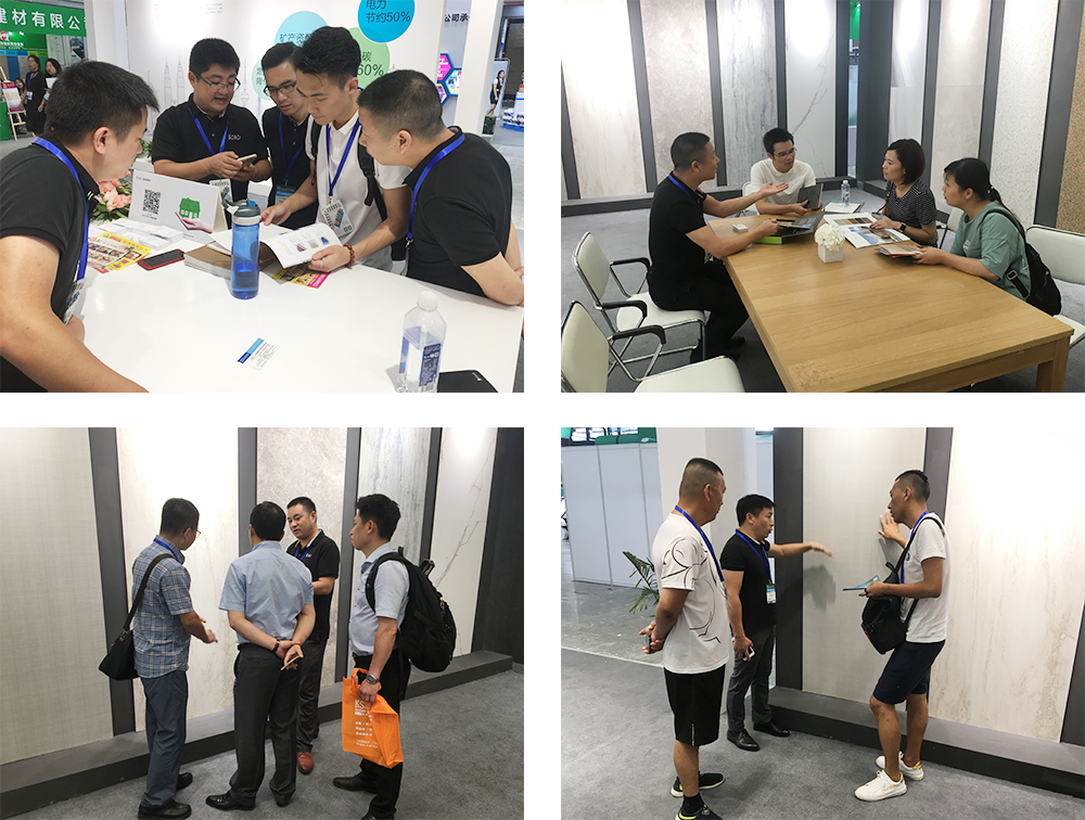 展會(huì)期間,最受大家關(guān)注的莫過于綠色建筑建材,在E4052展位上,LA’BOBO陶瓷薄板產(chǎn)品由于“薄、輕、硬、新、便、韌”等特點(diǎn),讓建筑的內(nèi)、外墻面、環(huán)境裝飾與空間的構(gòu)件及家具的面層得以全面“綠化”,因 此備受矚目,吸引了不少中外人士的注意,大家紛紛前來圍觀新型綠色建材的同時(shí),還有不少觀眾現(xiàn)場(chǎng)簽單,收獲滿滿!