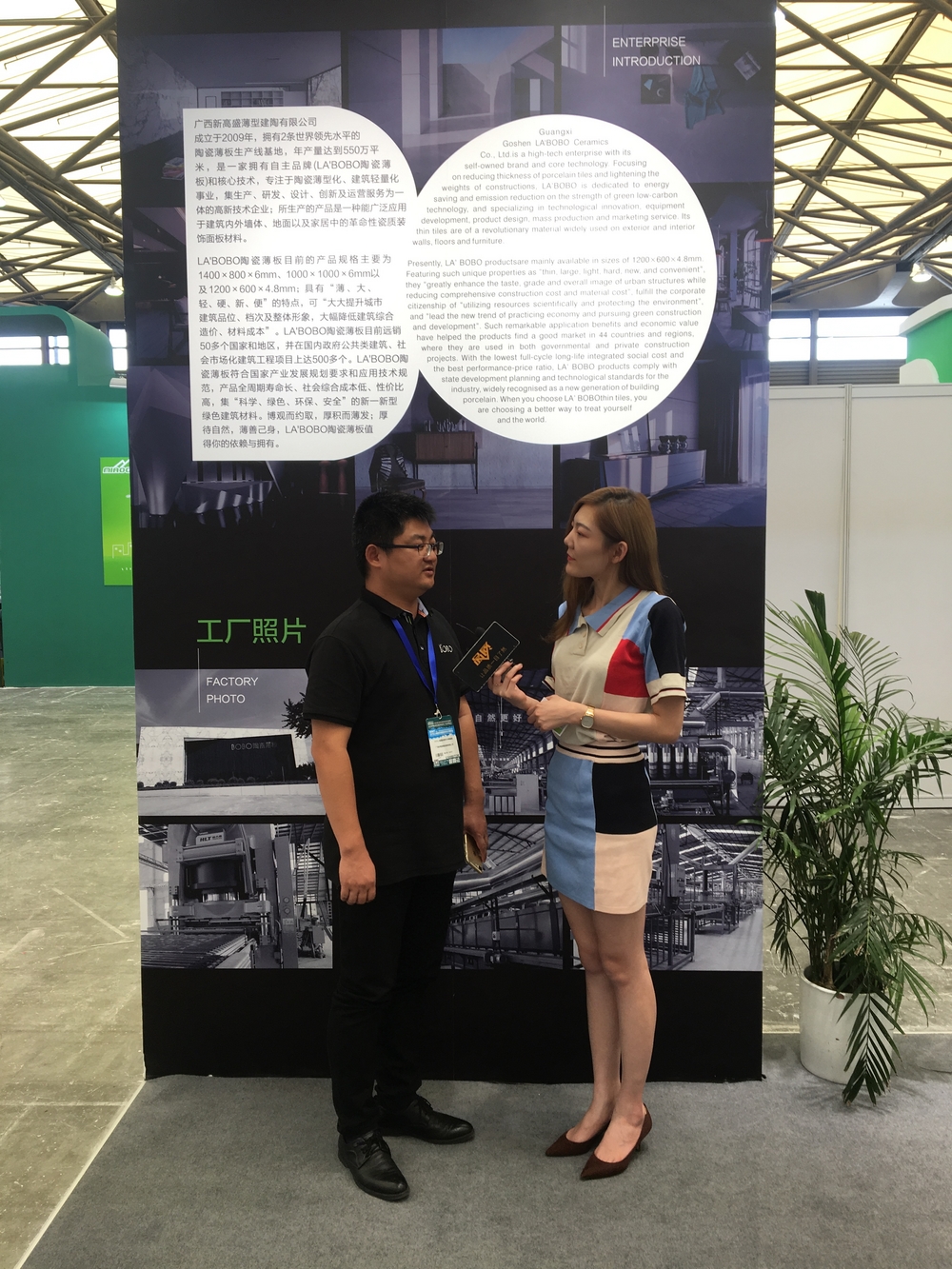 與此同時(shí),產(chǎn)品的輕量化、薄型化,以及抗菌技術(shù)也得到了媒體的密切關(guān)注,中國(guó)智造2025高峰論壇組對(duì)LA’BOBO陶瓷薄板中國(guó)事業(yè)部總經(jīng)理肖濤進(jìn)行了采訪,肖總向媒體介紹了BOBO飾面瓷板的產(chǎn)品特性和應(yīng)用范圍。