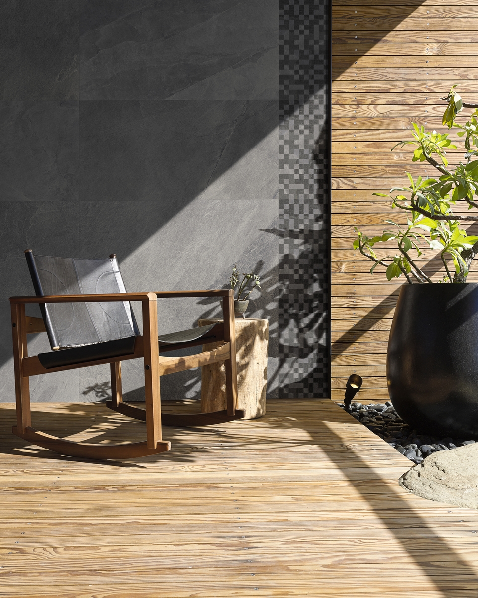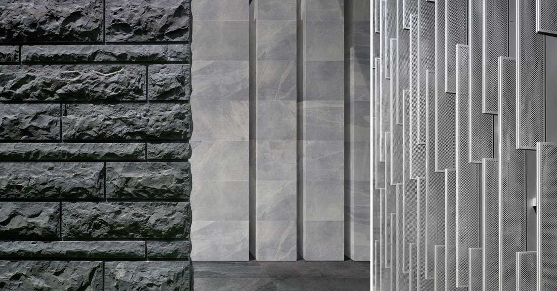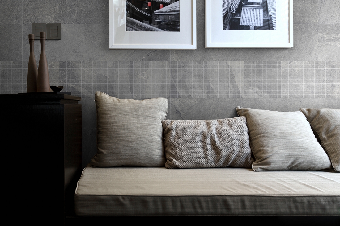 火山巖通過(guò)在薄板表面加入干粒技術(shù)應(yīng)用,配合模具,創(chuàng)造出質(zhì)感凹凸明顯的巖石紋路,在視覺(jué)和觸感上都盡可能讓人感受到真實(shí)巖石的粗糲感,使磚面效果更立體。