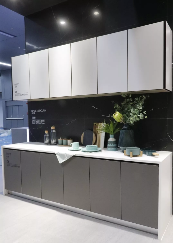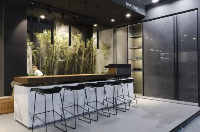 本屆廣州設(shè)計(jì)周,LA'BOBO陶瓷薄板除了工程渠道的應(yīng)用外,相對于2017,我們帶來的全空間應(yīng)用更加全面,不僅包括衣柜面、桌面,還包括櫥柜面、中島臺面。